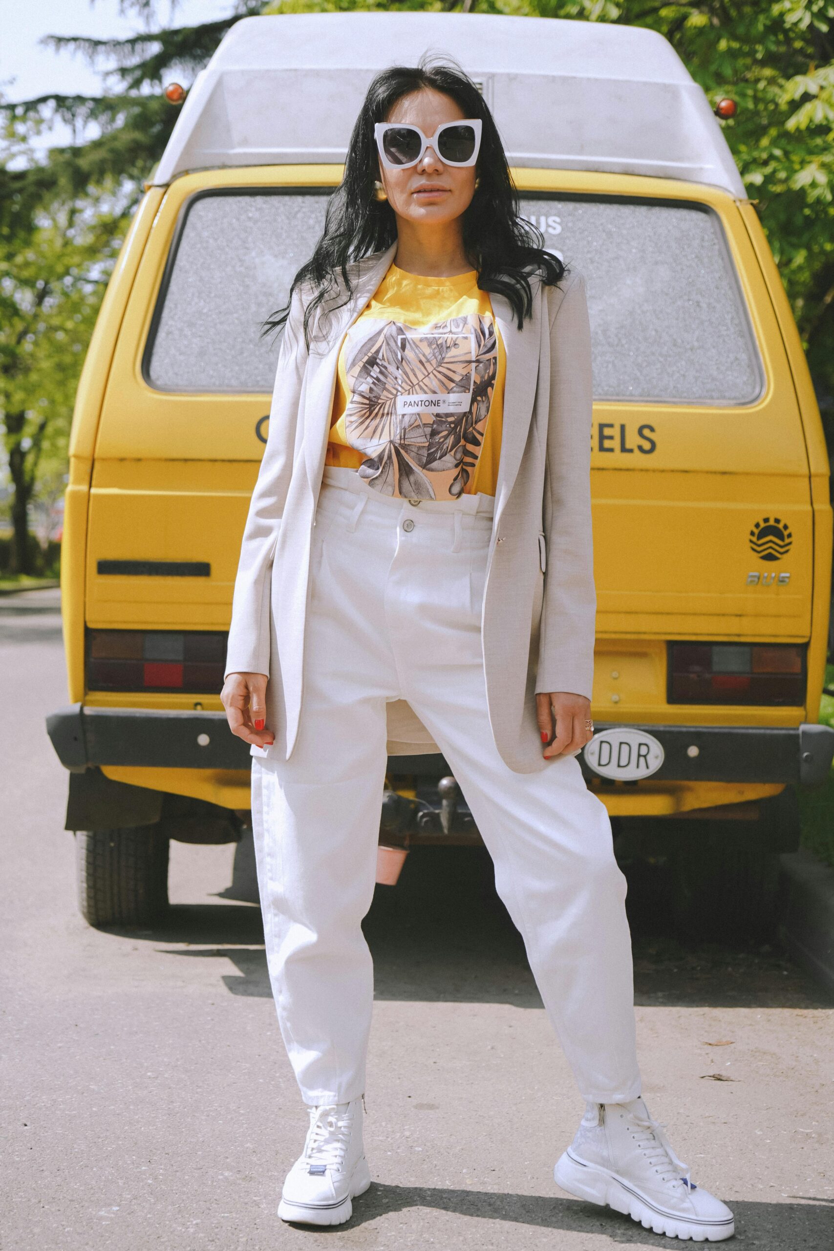 - Colorful sneakers (like bright yellow)